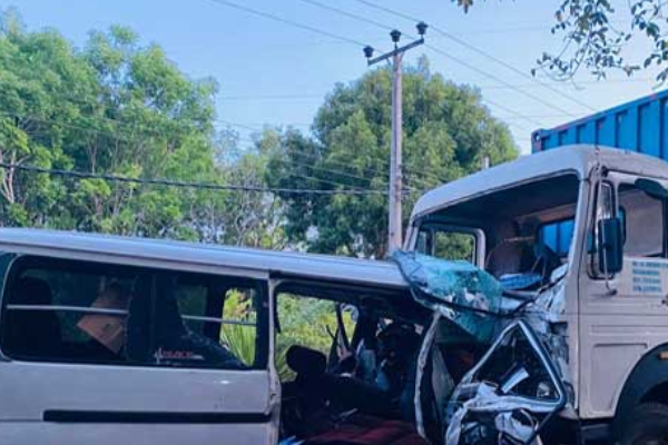 ලොරි රථයක් සහ වෑන් රථයක් මුහුණට මුහුණ ගැටෙයි. තිදෙනෙකු ජිවිතක්ෂයට