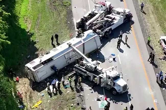 අමෙරිකානු -කැනඩා දේශසීමාවේ නයගරා දිය ඇල්ලේ සිට නිව්යෝර්ක් නගරයට ආපසු යමින් සිටි සංචාරක බස් රථයක් පාලනයෙන් ගිලිහී යාම හේතුවෙන් අනතුරකට ලක් වී තිබෙනවා .